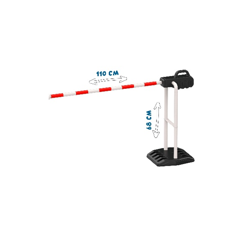 Rekomenduojamas amžius: nuo 3 metų. Pakeliamas eismo barjeras. Matmenys yra 110cm ilgio ir 68cm aukščio. Pagamintas iš tvirto, lengvai prižiūrimo plastiko. Nesudėtingai surenkama konstrukcija. Barjero pagrindą kad būtų sunkesnis galima užpildyti vandeniu. Galima naudoti viduje ir lauke, idealiai tinka eismo edukacijai. Kilmės šalis: Vokietija