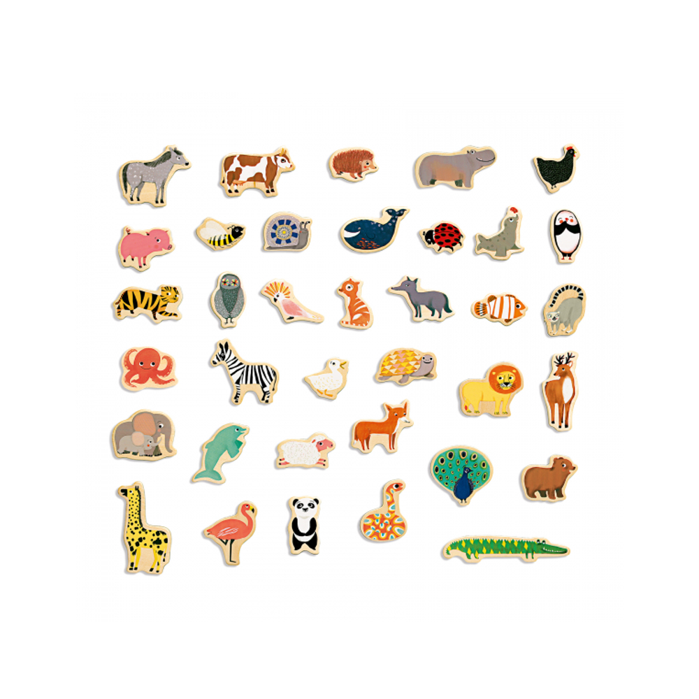 Rekomenduojamas amžius: nuo 2 metų. Spalvingas 36 medinių magnetukų rinkinys su mielais gyvūnėliais, skirtas vaikų žaidimams ir kūrybai. Idealiai tinka lipdyti prie šaldytuvo ar magnetinės lentos. Žaisdami vaikai mokosi atpažinti gyvūnus, lavina vaizduotę ir smulkiąją motoriką kalbinius įgūdžius ir pažinimą. Puikiai tinka žaisti