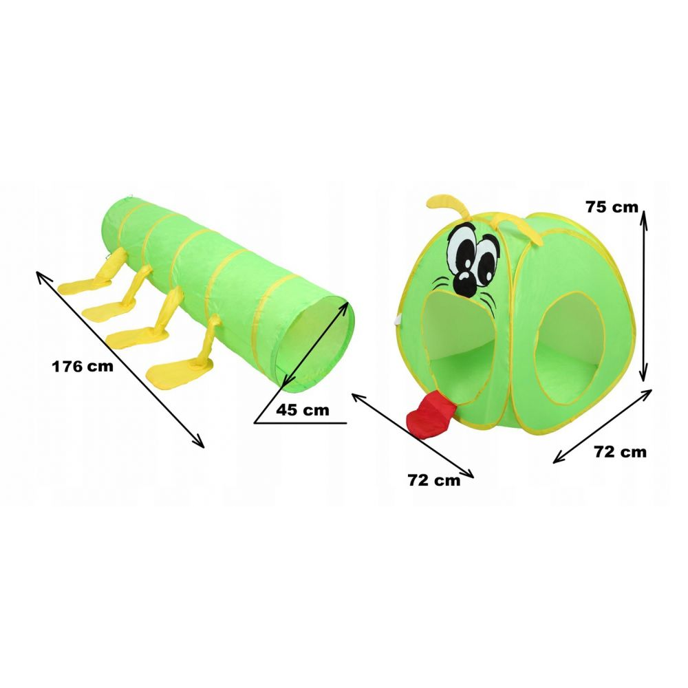 Rekomenduojamas amžius: nuo 2 metų. Palapinė kuros ilgis 2,4m. su šimtakojų formos tuneliu puikiai tiks į bet kurį vaikų kambarį. Poliesteris iš kurio pagaminta palapinė, yra atsparus trinčiai, o palapinės grindys yra atsparios vandeniui, todėl galima žaisti namuose ar sode. “Aštunkojo” galva ir tunelis yra ardoma konstrukcija, abi dalis galima atskirti ir naudoti atskirai.